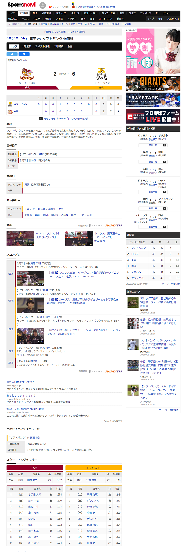 千賀滉大が2桁奪三振の好投で則本昂大との投げ合いを制す! 栗原陵矢にも一発が出た鷹が快勝 - パ・リーグ インサイト | パ・リーグ公式メディア情報サイト https://t.co/unf1xBMK7i #パ・リーグインサイト