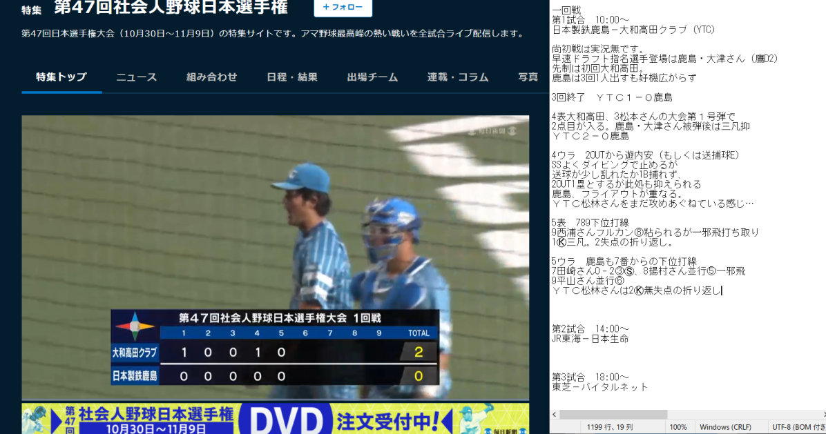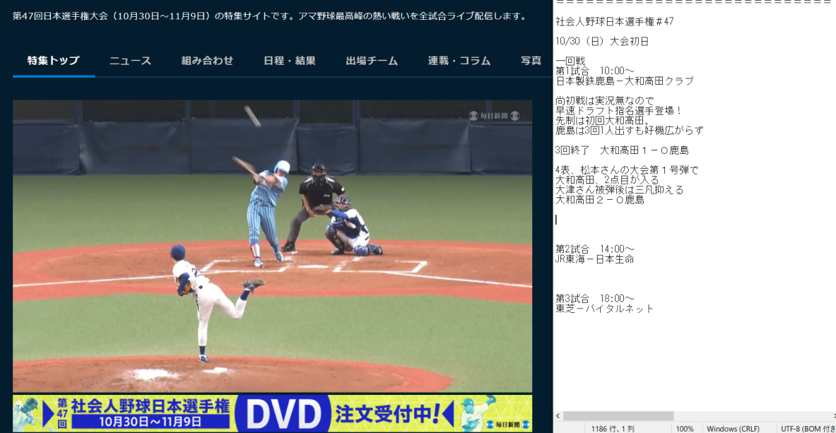 第47回社会人野球日本選手権 | 毎日新聞 https://t.co/45pAJ8kTcW
